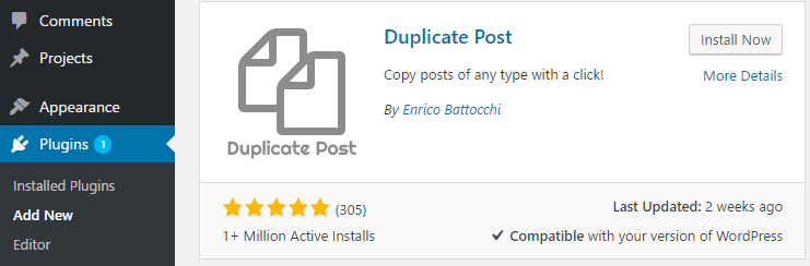 To illustrate our points, let’s check out two popular WordPress plugins. First, we’ve got Duplicate Post, which couldn’t be more straightforward. What this plugin does is enable you to create copies of any of your posts for testing purposes with a single click. It’s pretty specific, but it can come in handy sometimes.