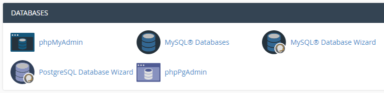 To access your website’s database via phpMyAdmin, look for the Databases section within your cPanel. Then, click on the phpMyAdmin button: