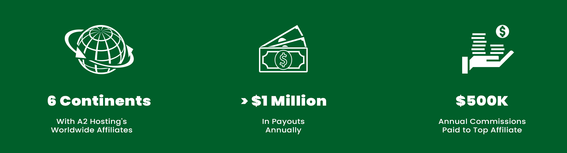 Help us promote our Blazing Fast Web Hosting and get paid for doing it. With hosting plans to fit any situation it’s never been easier to make money by referring your audience to A2. We offer a generous commission schedule where you can earn up to $125 per sale. Commissions can pile up fast, last year we paid over $500,000 to our top affiliate! Sign up and make sure to tell all of your friends, customers, website visitors and social media followers about A2’s super fast and affordable hosting and start earning now.