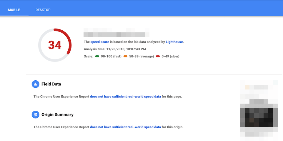 Next, you’ll want to look through your report and examine any areas where you received a poor score. As we mentioned, the results are separated into mobile and desktop versions. Let’s look at the Mobile tab first: