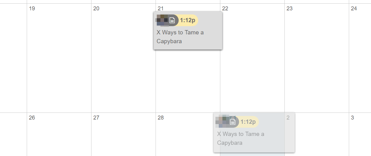 One of the best things about using a content calendar is that you can move things around and reassign tasks if needed. For example, you can drag and drop entries from one day to another: