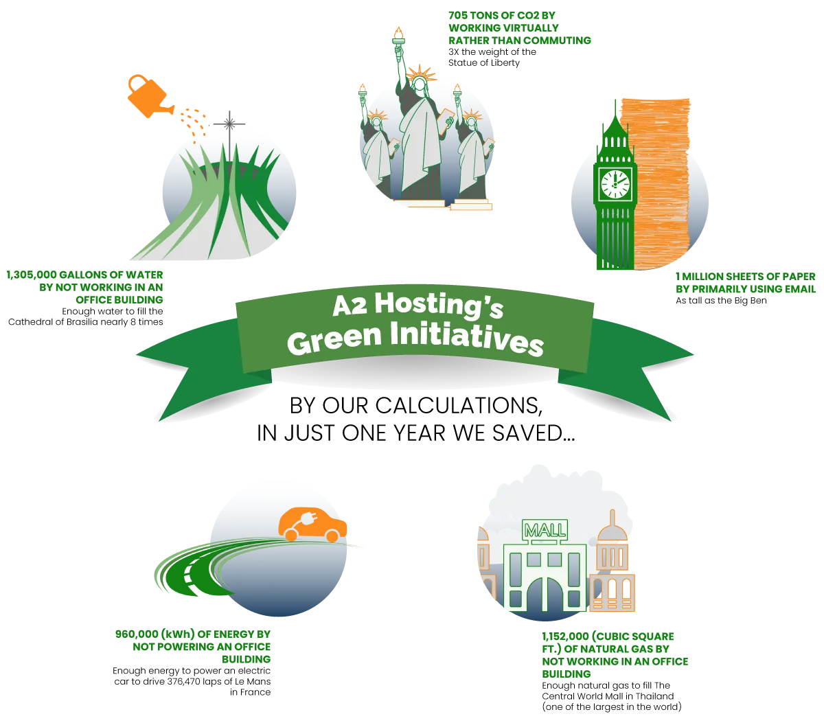 You’ve likely come across a socially conscious host. You’ve probably found a reliable host. You might have even found a high-performance host with superb around the clock support. At A2 Hosting, you’ve found a host that prides themselves on all of these features. Not only are we focused on excellent customer service and amazing products, but we also do our part to protect our environment! Through the green initiatives listed below, A2 Hosting is committed to doing the work to be a more green and sustainable company in order to protect our environment for future generations!